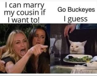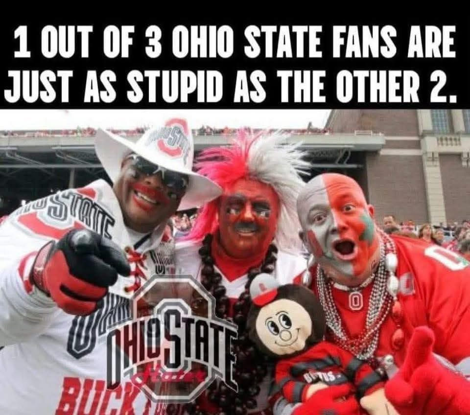 Hey Buckeyes—when we show up in Columbus, we take over your campus, rename the Horseshoe “The Participation Trophy Pit,” and remind you that your mascot is literally just a tree nut with crazy-looking eyes. We get it—you’re proud of yelling “O-H!” But maybe don’t chant it mid-arrest outside a High St. bar, reeking of Axe body spray and shame.
